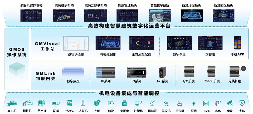 建筑機(jī)電領(lǐng)域?qū)俚拈_放式 GMOS 操作系統(tǒng),并以之為核心推出樓宇智控系統(tǒng),包含物聯(lián)網(wǎng)關(guān)、工作站、行業(yè)解決方案,徹底解決設(shè)備聯(lián)接調(diào)試周期長(zhǎng)、工程需每單 定制的行業(yè)難題,實(shí)現(xiàn)對(duì)建筑內(nèi)機(jī)電設(shè)備的集中監(jiān)控和智慧管理。