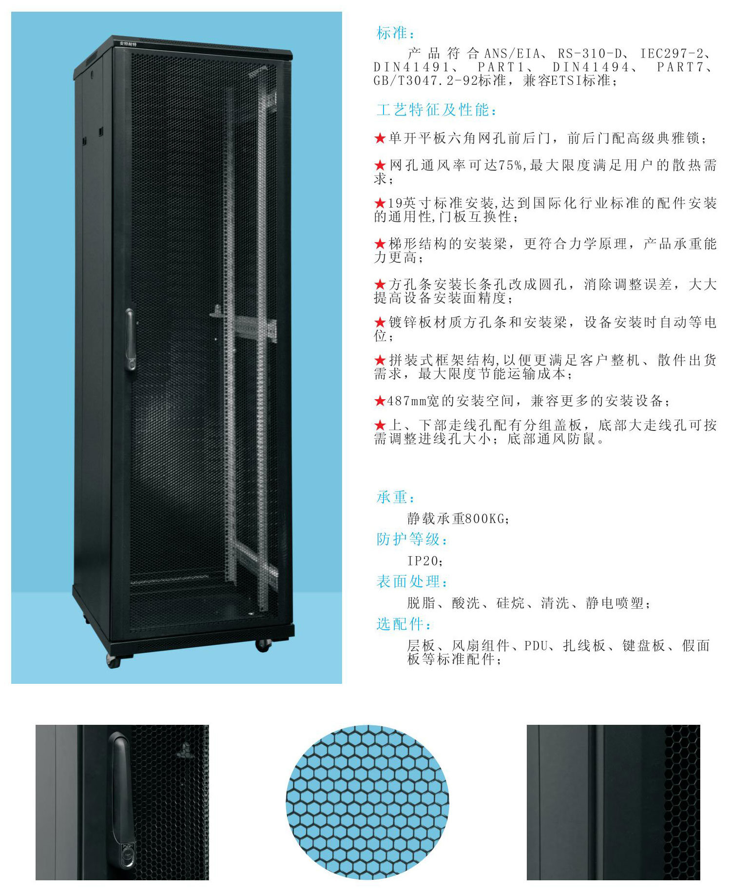 選配件:層板、風扇組件、PDU、扎線板、鍵盤板、假面板等標準配件;